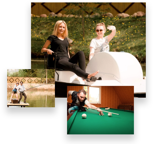 Возможно проведение свадеб, корпоративов и других мероприятий! Для этого на базе отдыха имеется банкетный зал до 100 мест.